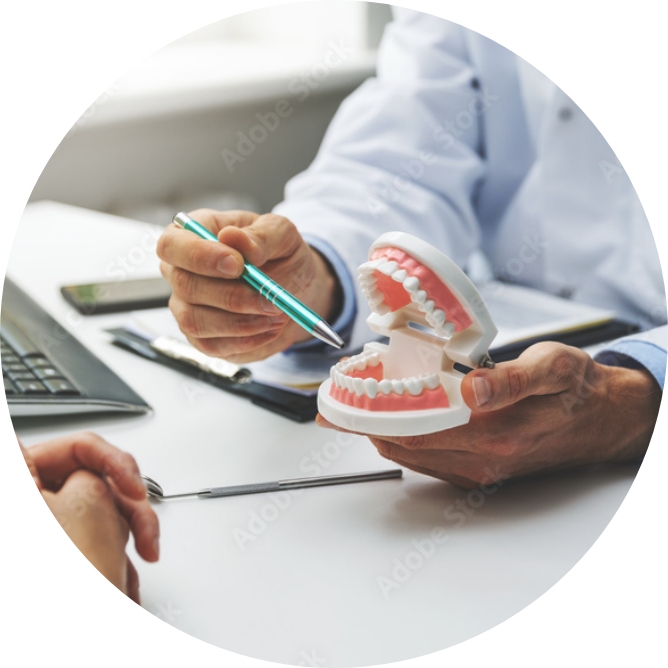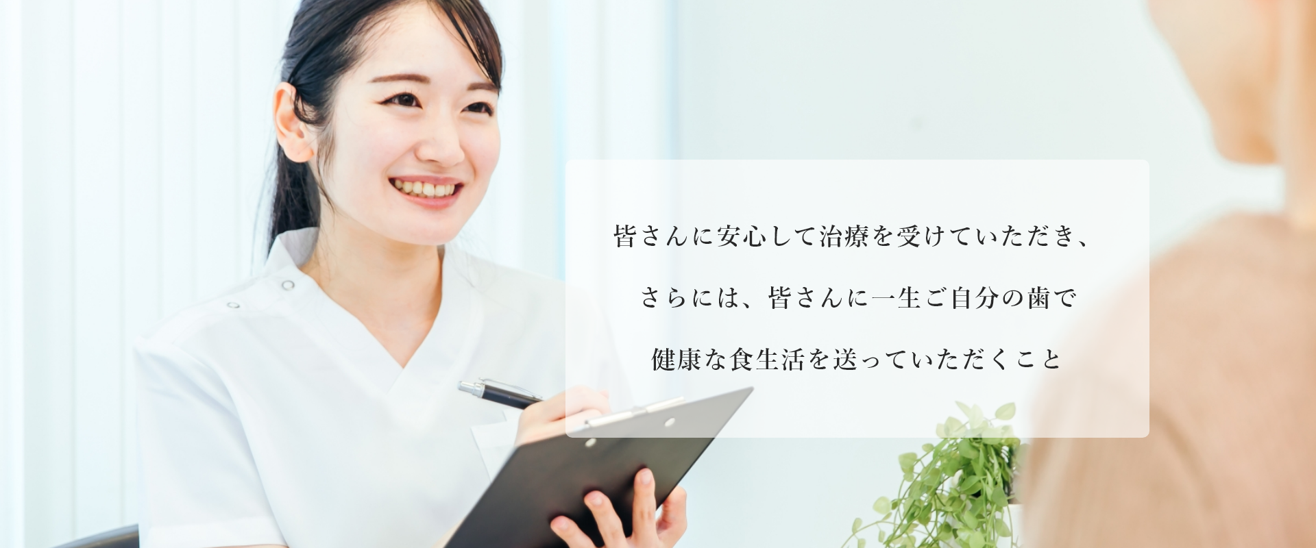 虫歯や歯周病といった一般歯科診療のほか、入れ歯や義歯、など幅広くご対応させていただいております。患者さんにできるだけご不安な思いをさせないよう、分かりやすい言葉を使って、治療内容やお口の状態をご説明いたします。